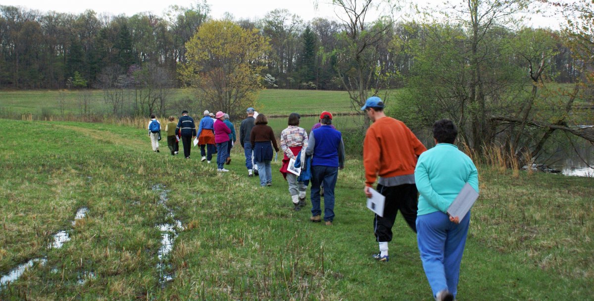 We will be walking to a section of the creek upstream from Dayspring -- an area of County Parkland that has been designated as one of ten high biodiversity areas in the County. The walk is a little over a mile round-trip. The trail is steep in some places, rough and rocky in other places. We recommend wearing sturdy footwear and bringing a walking stick or trekking pole(s).