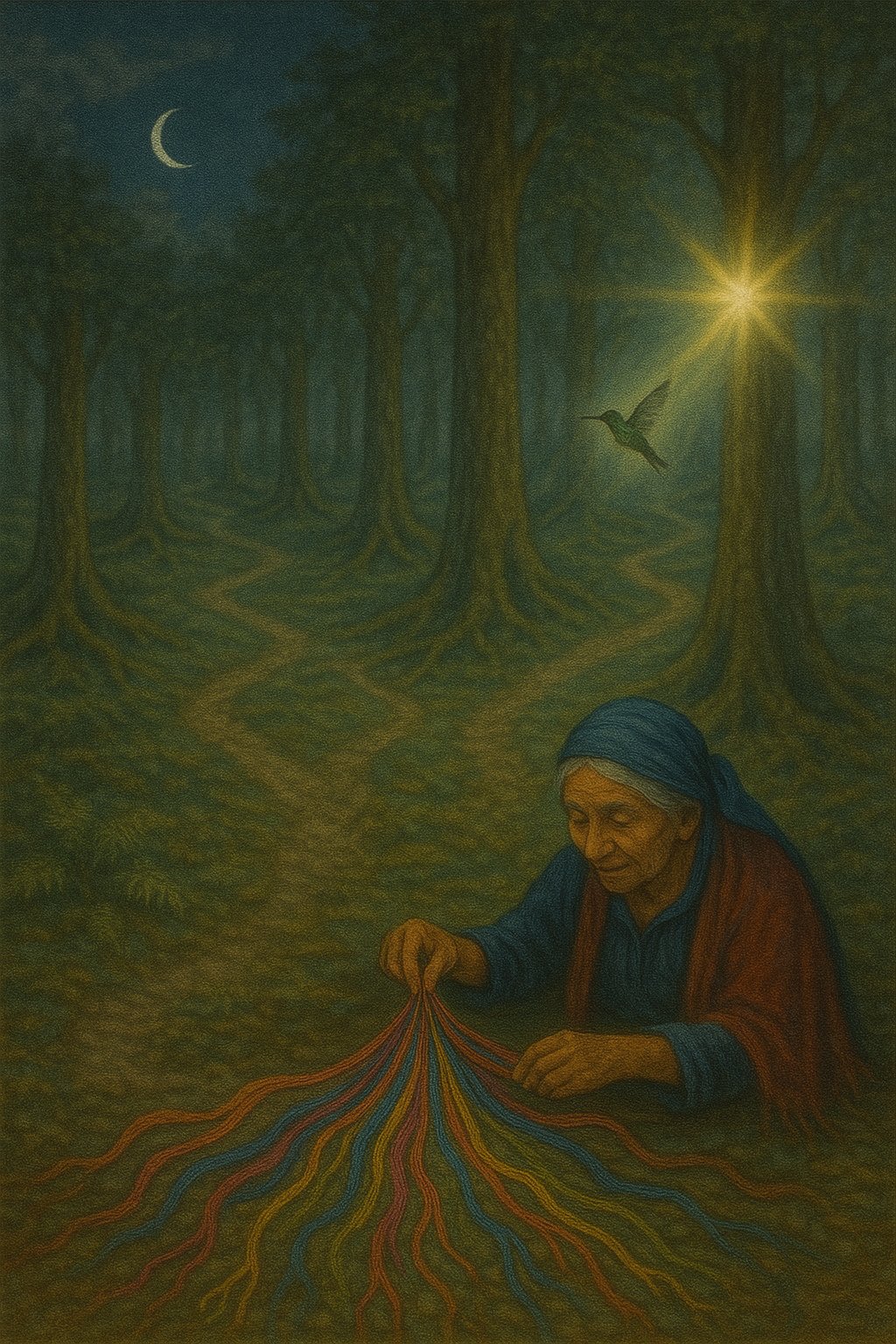 Even in the chilliest of times, and in the midst of a heart-rending world, the old tales remind us that small things have tremendous power. A hummingbird brings back the sun. An ancient woman re-creates the world by weaving again a cloth of transcendent beauty...